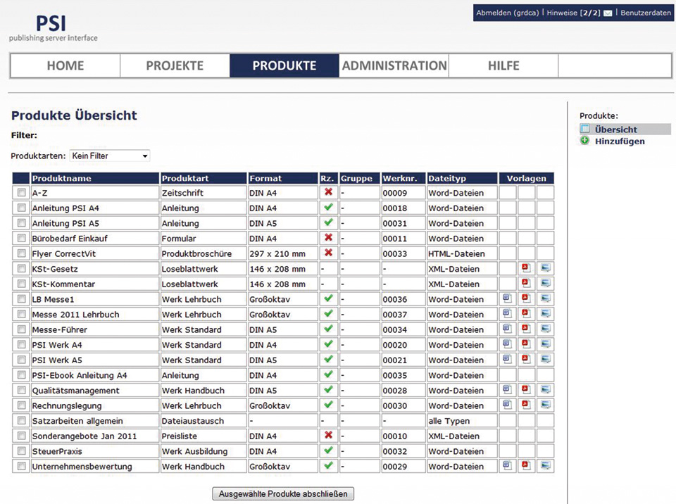 - PUBLISHING SERVICE INTERFACE (PSI) (Tool zur einfachen und schnellen Herstellung Ihrer Ausgabemedien)